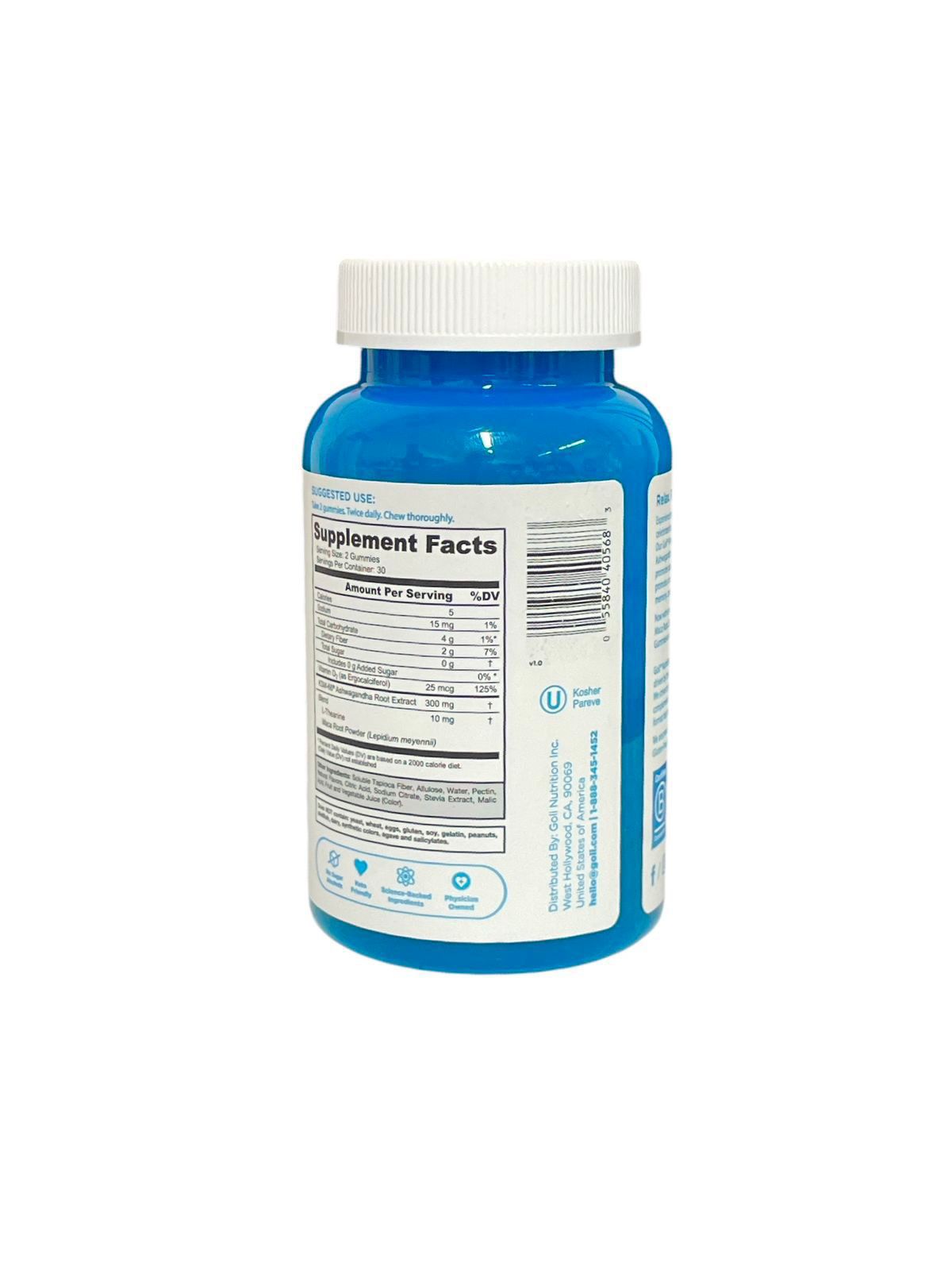 📦 Notas del producto: -Contenido: 60 gomitas (30 porciones de 2 gomitas)-Sabor: Suave y afrutado-Ingredientes clave: KSM-66® Ashwagandha (extracto raíz): 300 mg Maca en polvo: 10 mg Vitamina D: 25 mcg L-Teanina: 15 mg -Cero azúcares añadidos-Sin gelatina, sin lácteos, sin soya-Certificación Kosher y apto para dietas veganas 🎯 Bueno para: -Personas con estrés crónico o ansiedad leve-Estudiantes en época de exámenes-Emprendedores, ejecutivos o padres multitarea-Quienes buscan un boost natural para el enfoque sin cafeína-Personas con insomnio o ciclos de sueño alterados Inspiradas en la medicina ayurvédica ancestral, estas gomitas traen el poder de la Ashwagandha a la vida moderna. Goli combinó ingredientes clínicamente respaldados como el KSM-66®, junto con superalimentos como maca y L-teanina, para crear un suplemento innovador que te apoya física y mentalmente desde la primera dosis.